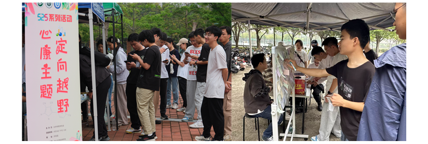4月26日,线上赌博app 学生会在东校园开展了一场“心灵奇旅·定向越野”,将运动与心理健康结合,让同学们在奔跑中释放压力,200名中大学子以脚步丈量校园,当压力化作成长的动力。通过“收集自我”、“撕掉束缚”、“释放压力”、“平静心灵”、“赞美之墙”、“心愿树洞”等多个小游戏,让同学在游戏中感受到协作、赞美的力量和心灵的平静。