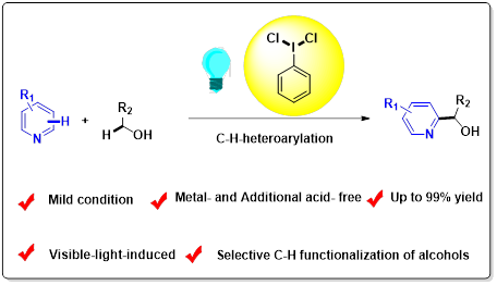 (25) Miao Wang, Changzhen Yin, Peng Hu*, Ag-catalyzed remote unactivated C(sp3)−H heteroarylation of free alcohols in water, Org. Lett. 2021, 23, 722–726. (Featured by Synfacts, 2021, 17, 408)