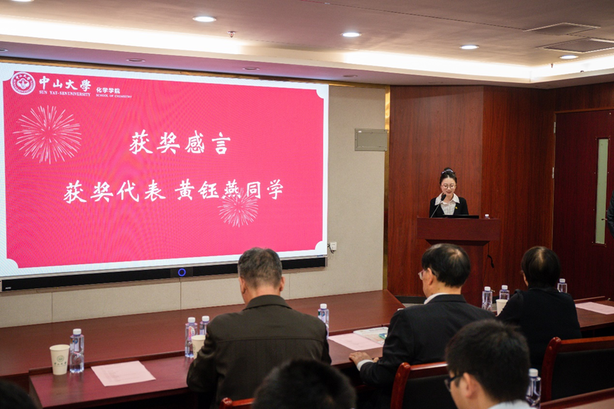 20251114日,2025年度线上赌博app 芙兰励教奖学金颁奖仪式在中山大学东校园化学材料综合楼芙兰学术中心会议室隆重举行。中山大学化学系校友陈运河、物理系校友刘修婉伉俪,化学系校友沈继端莅临本次颁奖仪式。仪式由线上赌博app 党委书记冯双研究员主持。